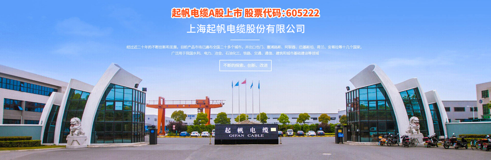 上海起帆電纜股份有限公司,公司是生產(chǎn)電線電纜的專(zhuān)業(yè)骨干企業(yè),公司成立于1994年,經(jīng)過(guò)24年的風(fēng)雨歷程,現(xiàn)已成為擁有面積350000平方米,擁有高中級(jí)技術(shù)員120多人,年生產(chǎn)能力近80億人民幣的規(guī)模企業(yè)。公司產(chǎn)品有各類(lèi)高低壓電力電纜,電氣裝備用電纜和通信電纜,主要產(chǎn)品規(guī)格有:聚氯乙烯電力電纜、交聯(lián)氯乙烯電力電纜、低煙無(wú)鹵環(huán)保型、耐火電力電纜、控制屏蔽型電纜、橡套電纜及預(yù)分支電纜等,上千種規(guī)格。